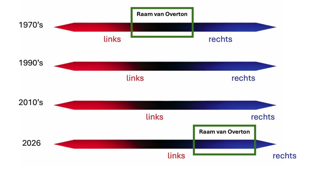 In zijn analyse verwijst Pfeijffer naar het Raam van Overton: het spectrum van ideeën dat in een samenleving als acceptabel geldt. Volgens hem is dat raam in veel westerse landen naar rechts verschoven. Standpunten die enkele jaren geleden nog onaanvaardbaar leken, maken nu deel uit van het reguliere debat. Daarmee verschuift niet alleen het beleid, maar ook wat als normaal en zegbaar wordt beschouwd.